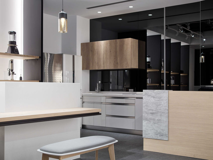 丞洋家電門市空間以黑與白的對比營造出現代感,而木質元素的加入賦予了溫暖與自然的感覺。這裡的陳列架、產品展示和照明都展現出設計品味,這樣的空間呈現出極具現代感和自然調性。#空間攝影